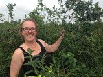 Das Pflücken selbst funktioniert so: Man bringt geeignete Gefäße wie Eimer, Plastikwannen oder große Tupperdosen mit nach Willenscharen. Diese werden am Eingang gewogen, und man erhält einen Bon, auf dem das Gewicht der Gefäße vermerkt wird, damit es hinterher nach dem Pflücken vom Gesamtgewicht wieder abgezogen werden kann. Hinter diesem „Check-in-Schalter“ wartet man auf den Shuttle-Traktor, der die Pflücker dann in die Sträucherreihen fährt, in denen als nächstes gepflückt werden soll. Und dann geht es los! Heidelbeeren lassen sich super pflücken: Die Sträucher sind recht hoch, man muss sich also nicht so tief bücken wie beim Erdbeerpflücken. Außerdem haben sie keine Stacheln wie etwa Brombeersträucher, die sich ja doch ganz gern ein bisschen gegen die Ernte wehren.