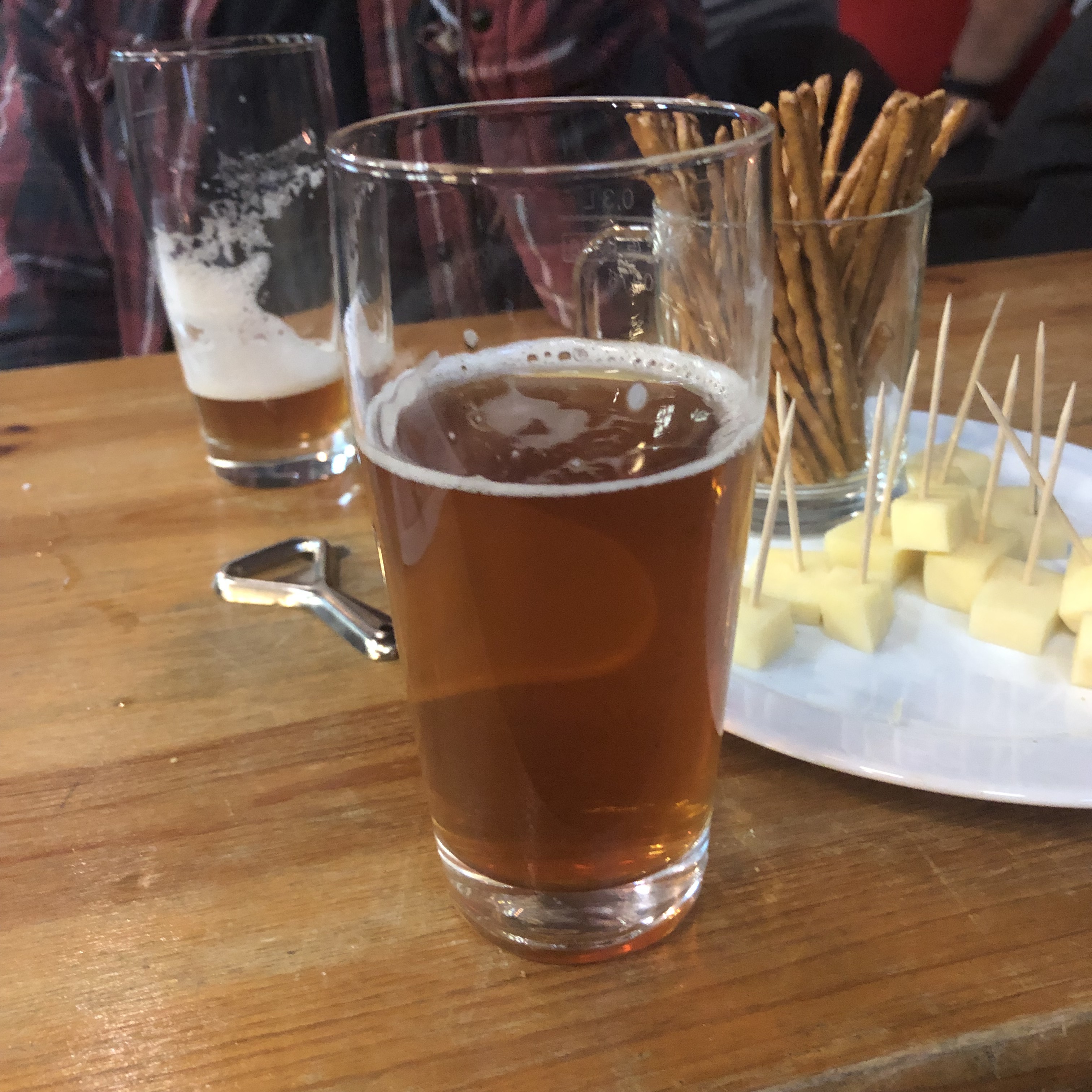 Bier Nummer 2: Dunkler in der Farbe, im Geschmack kapriziöser als das erste. Geschmack beim ersten Schluck etwas herb, dann aber gleich ein sehr samtiges Mundgefühl. Erfordert mehr Aufmerksamkeit als das erste Bier. Dieses Bier war mein Favorit.