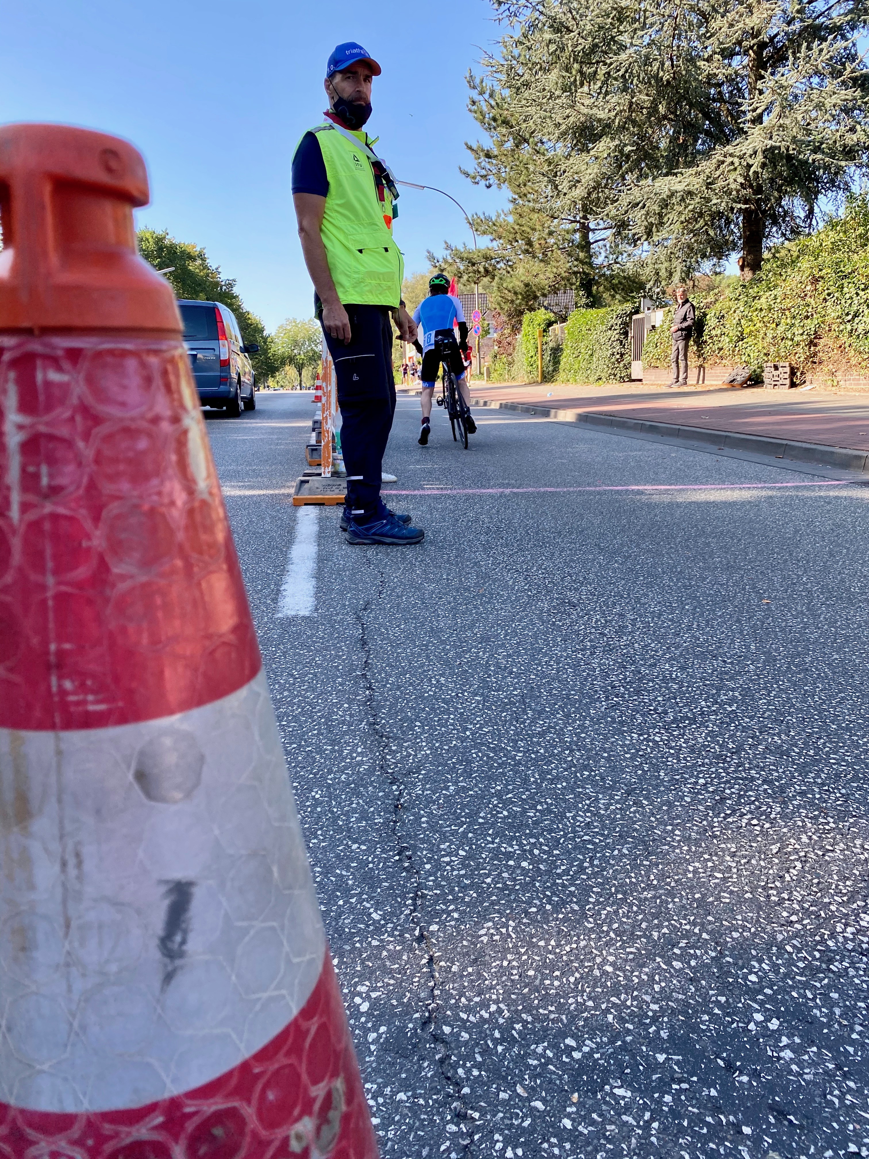 So wie ich das Event gestern miterlebt habe, gab es keine kritischen Situationen, in denen Menschen einem erhöhten Infektionsrisiko ausgesetzt gewesen wären. Zum Glück gab es auch sonst keine dramatischen Vorkommnisse – wenn man mal von dem einen Teilnehmer absieht, der sich auf der Radstrecke offenbar verfahren und seinen Fehler erst bemerkt hatte, als das Ortschild von Hamburg in Sichtweite war. Die beiden Rettungssanitäter vom Roten Kreuz hatten jedenfalls glücklicherweise keine Einsätze.