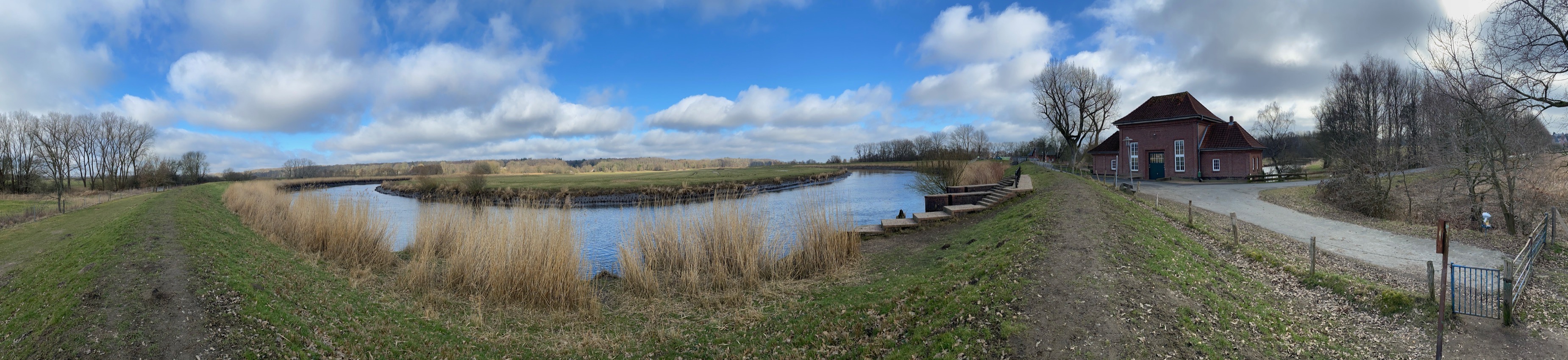 Umso schöner, wenn es dann auch mal einen echten Lichtblick gibt. Wir waren heute mal wieder mit Komoot wandern – ich hatte hier ja schon mal über zwei Touren in bzw. um Elmshorn geschrieben. Dieses Mal nicht in ganz unmittelbarer Nachbarschaft, sondern in Itzehoe, genauer gesagt in Münsterdorf. Die Inspiration für diesen Ausflug kam von Sven Herrmann, der auf Facebook und Instagram immer so schöne Fotos und Drohnen-Videos seiner Wanderungen und Spaziergänge teilt. An dieser Stelle vielen Dank dafür! 🙂 Die Fotos seiner jüngsten Tour machten mich neugierig: Das Schloss Breitenburg in Münsterdorf kannte ich bislang nur vom Vorbeilaufen beim Itzehoer Störlauf. Doch dass die Stör rund um Schloss und Golfplatz so schön geschwungene Schlenker dreht, wusste ich gar nicht.