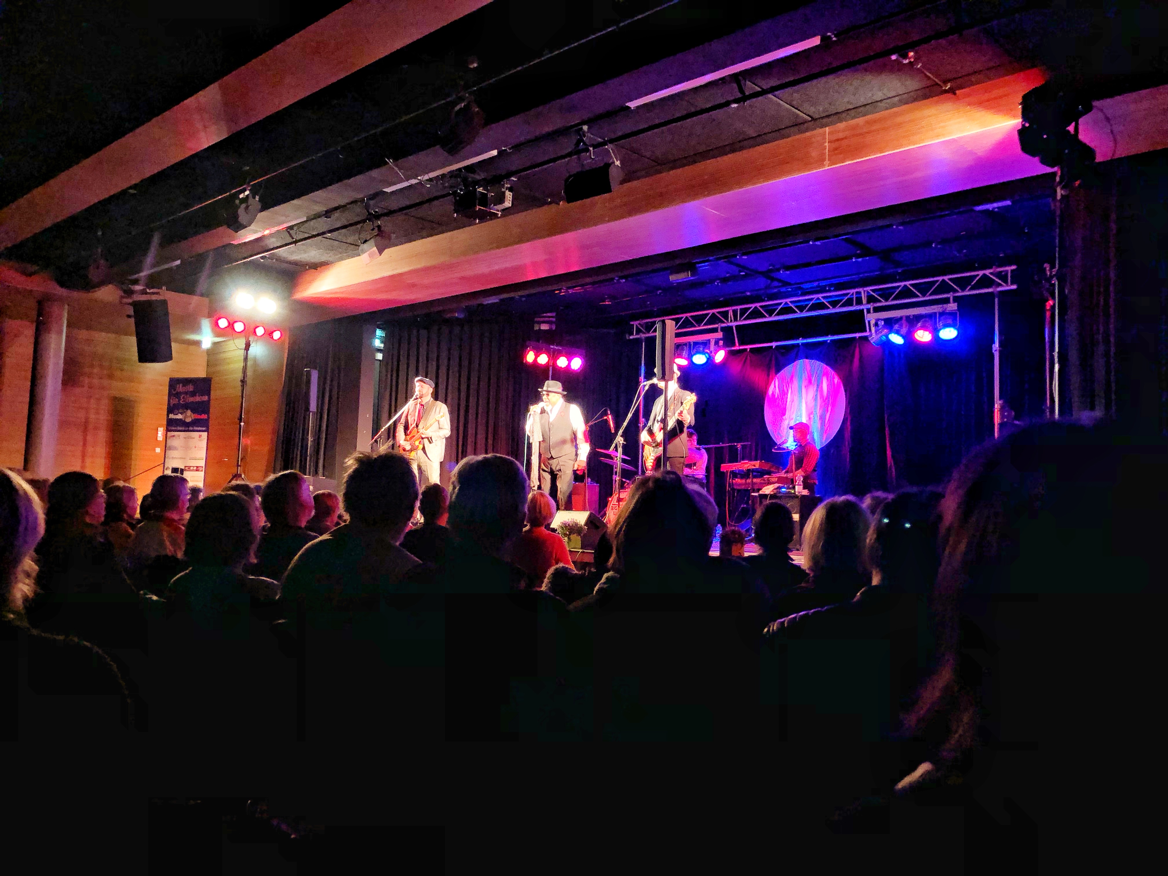 Wir wurden nicht enttäuscht! Das Konzert in der Erich-Kästner-Gemeinschaftsschule war ganz große Klasse. Groß genug, um die Musik in einer Menschenmenge zu erleben und klein genug, um alles mitzukriegen und für ein paar Fotos auch mal weiter nach vorne gehen zu können. Wirklich cool war der Moment, als bei einem Stück für eine Weile die Tontechnik versagte. Denn die Panne erschütterte niemanden, stattdessen animierte die Band das Publikum, einfach den Refrain immer weiter zu singen, bis der Tonausfall behoben war. Der Stimmung tat diese unplugged-Überbrückung keinen Abbruch – im Gegenteil! Wir verließen das Konzert sehr beschwingt und freuten uns, einen für uns neuen coolen Sänger entdeckt zu haben. Warum ich hier auf diesem Blog kein Wort darüber verloren habe, weiß ich nicht, es muss im Alltagswusel einfach untergegangen sein. Derzeit ist geplant, dass Big Daddy Wilson im April 2022 noch einmal nach Elmshorn kommt – wer will, kann sich den Termin ja schon mal vormerken.
