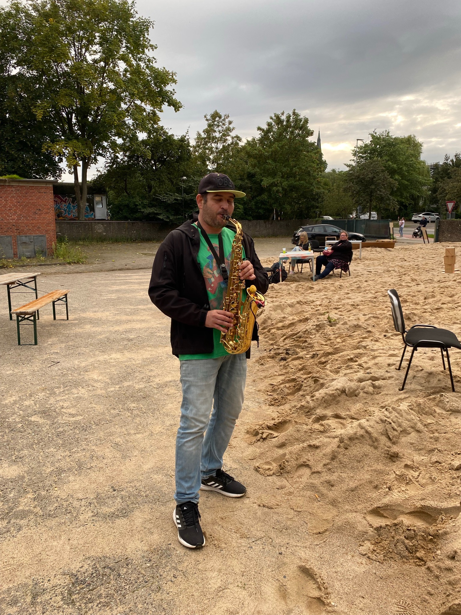 Am ersten Abend waren schätzungsweise um die 100 Leute dort beim After-Work-Club. Die Menge verlief sich ein wenig, auch als die Coverband LeTrio auftrat und jede Menge Oldies spielte. Doch auf der Sandfläche wurde vereinzelt getanzt, an den Bierzelttischen wippten die Knie im Takt, und überall blickte ich in fröhliche und entspannte Gesichter. Ich hatte viel Spaß, durfte daneben auch Manuela Kase (Chefin des Stadtmarketings), Celli (Social Media-Managerin von Broderick, Ragazzi und Postopia) und Souzan Alavi (Tanzstudio Alavi) kennen lernen und habe mich nett unterhalten. Was für eine Wohltat nach den langen und tristen Corona-Monaten – endlich mal wieder locker mit anderen Leuten ins Gespräch kommen, endlich mal wieder Partyfeeling, endlich mal wieder was los in Elmshorn!