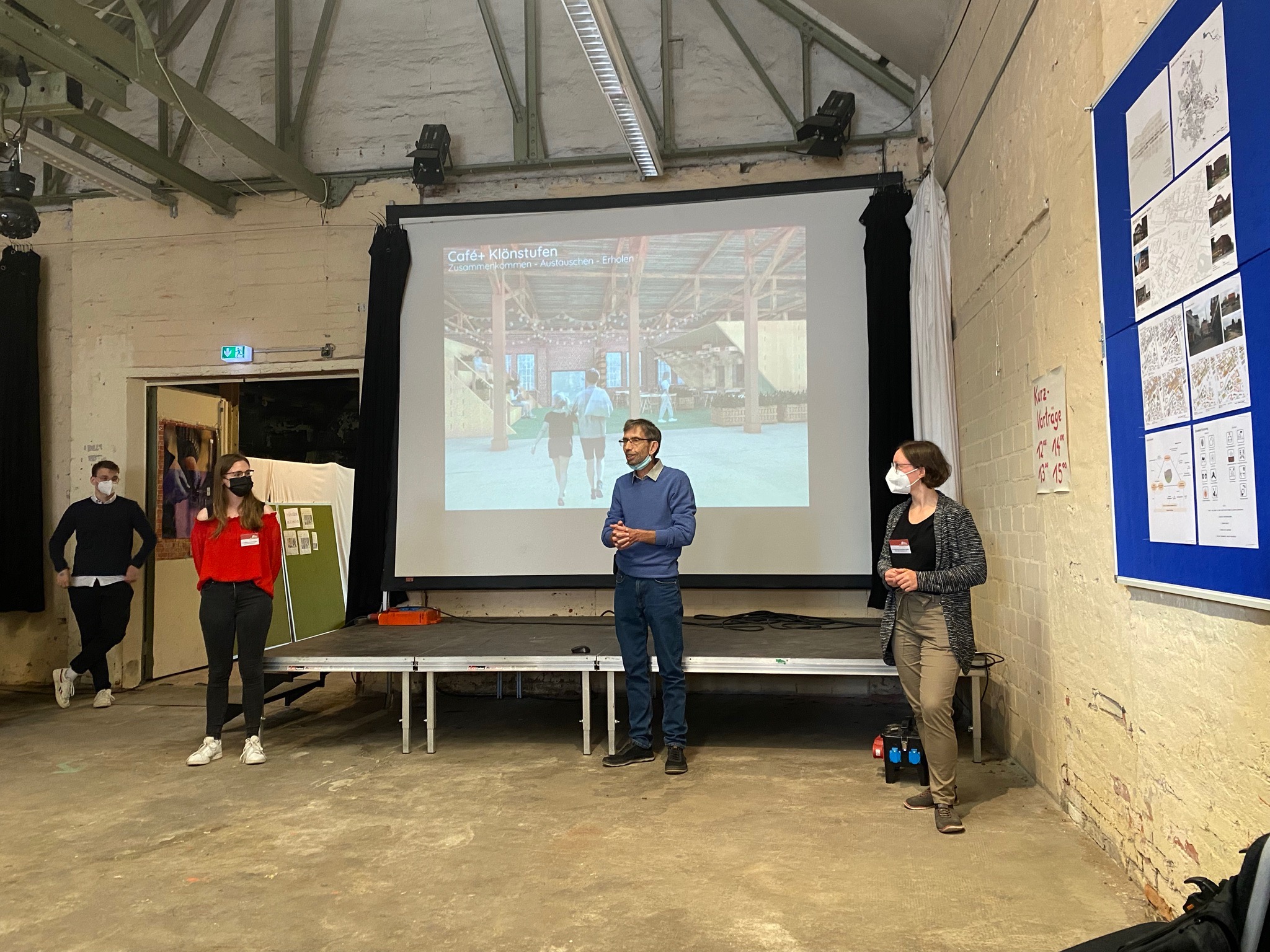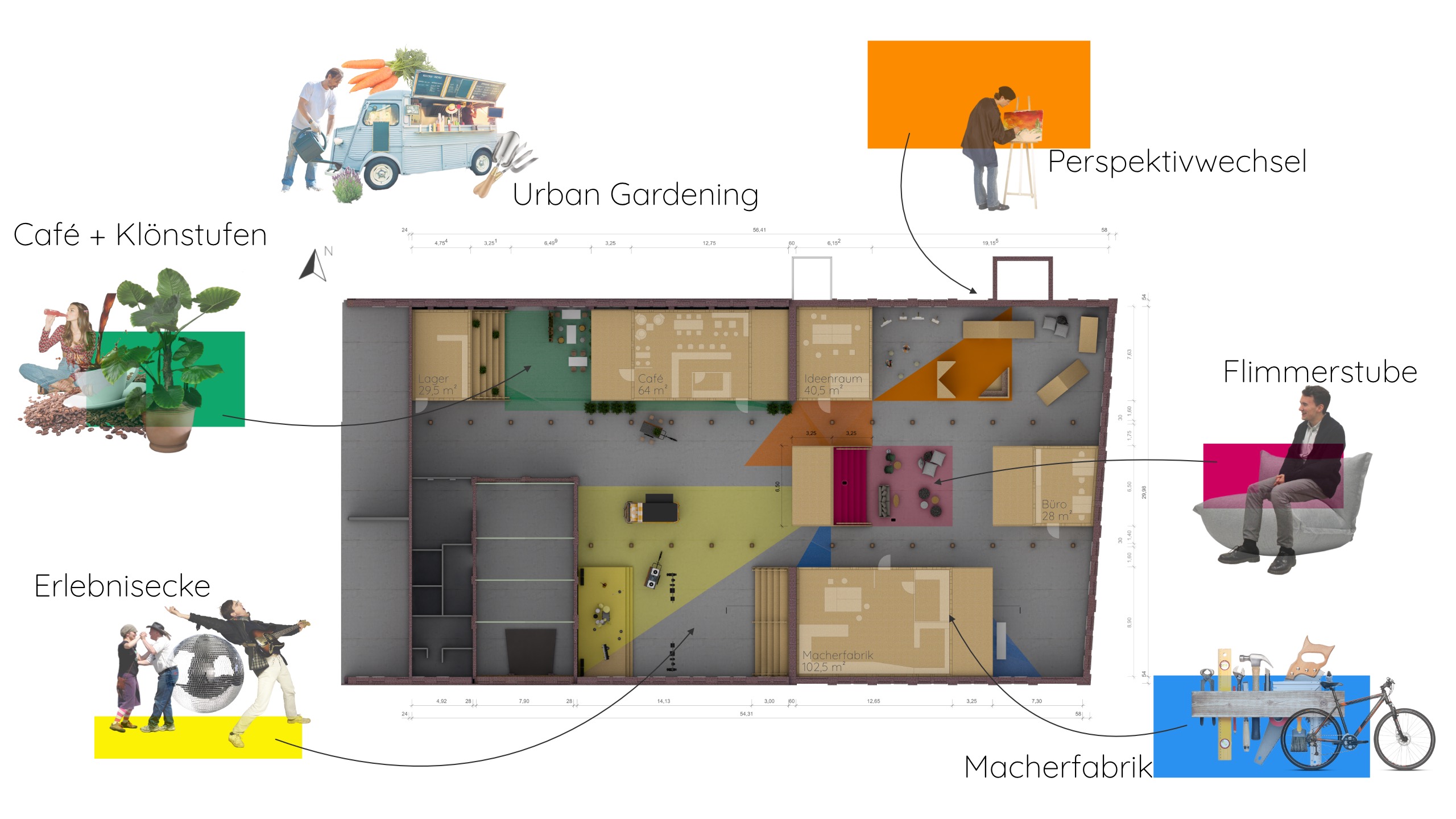Vier Szenarien: Initial-Café, Quartiersgarage, studentisches Wohnen und Campus