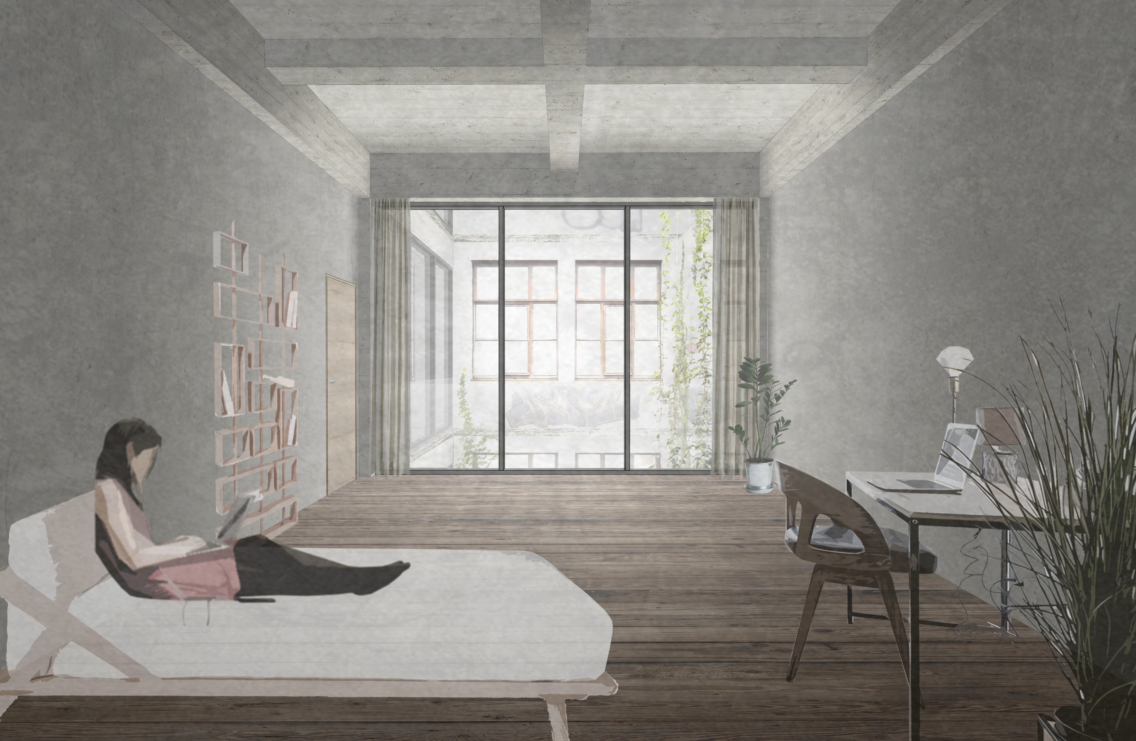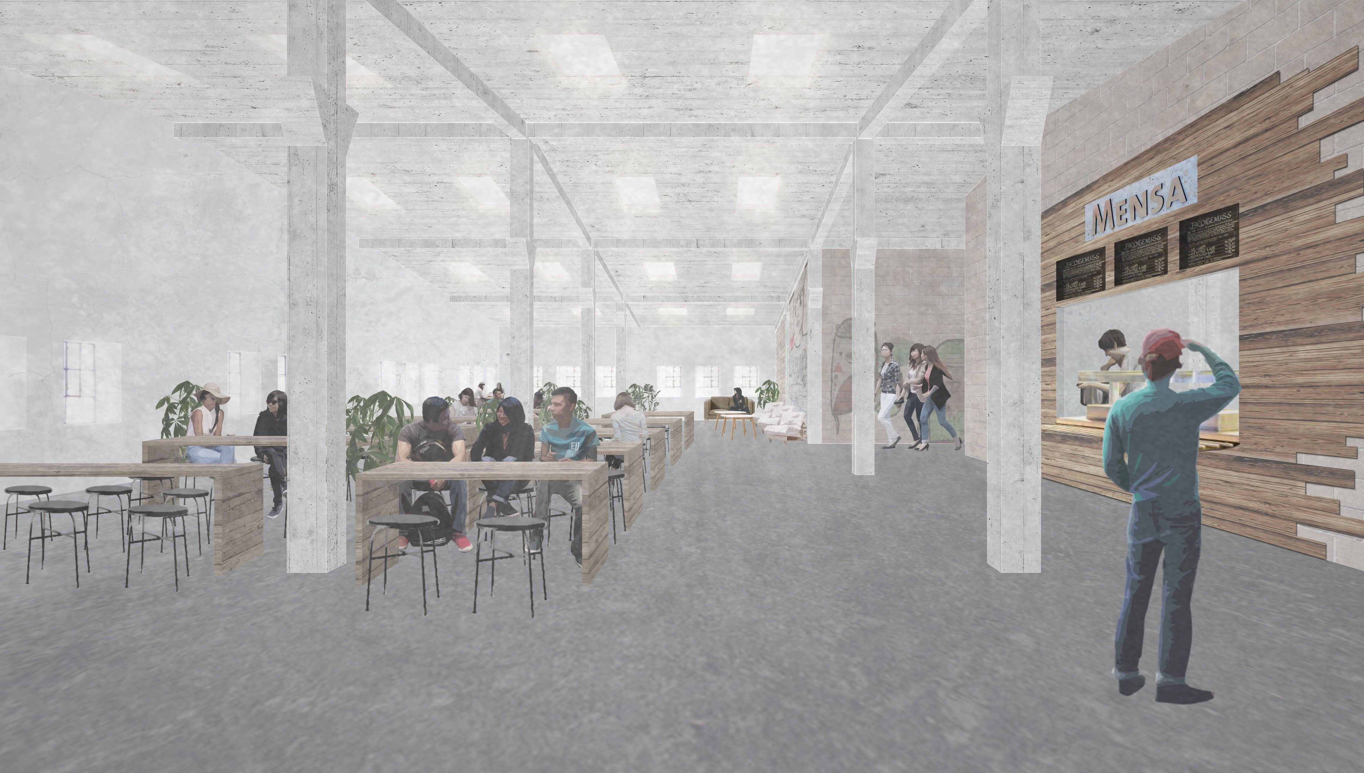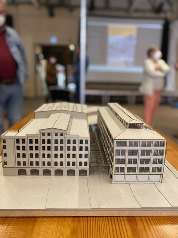 Laura Eckermann, die in Hamburg Architektur studiert hat, interessiert sich in erster Linie aus Nachhaltigkeitsgründen für die Knecht’schen Hallen und hat ihnen im Dezember 2020 deshalb ihre Masterarbeit gewidmet. „Mein Hauptinteresse gilt der Abfallvermeidung. Denn immerhin stammen 55% allen Mülls aus der Bauindustrie.“ Alte Gebäude zu erhalten und zu sanieren vermeidet zum einen jede Menge Bauabfälle und erfordert weniger neue Baumaterialien – schließlich schlägt insbesondere die Produktion von Zement mit ihrem hohen CO2-Ausstoß in der Klimabilanz negativ zu Buche. Laura präsentierte vier Szenarien für die künftige Nutzung, die entweder nacheinander oder alle parallel zusammen verwirklicht werden könnten. Ausgangspunkt (Szenario 1) ist ein Initial-Café als Keimzelle für das neue Quartier. Hier könnten die Elmshorner Bevölkerung, Stadtverwaltung, die Eigentümerfamilie Sachau, der Freundeskreis und andere Initiativen gemeinsam Ideen entwickeln und die Neunutzung der Gebäude anstoßen. Szenario 2 dürfte auch denjenigen gefallen, die häufig über den Parkplatzmangel in der Elmshorner Innenstadt schimpfen. Denn bei diesem Projektmodul würde das Werksgebäude 1 zu einer Quartiersgarage umgebaut. Szenario 3 sieht studentisches bzw. junges Wohnen im Hauptgebäude der Knecht’schen Hallen vor. Zielgruppe wären Studierende der Elmshorner Nordakademie ebenso wie der Hamburger Universitäten, es ließe sich Wohnraum für immerhin 60 junge Menschen schaffen. Für dieselbe Klientel ist auch Szenario 4 interessant, das eine Nutzung des Werksgebäudes 2 als zusätzlichen Campus für die Nordakademie vorsieht, die sich auf Expansionskurs befindet und zusätzliche Räumlichkeiten daher gut gebrauchen kann.