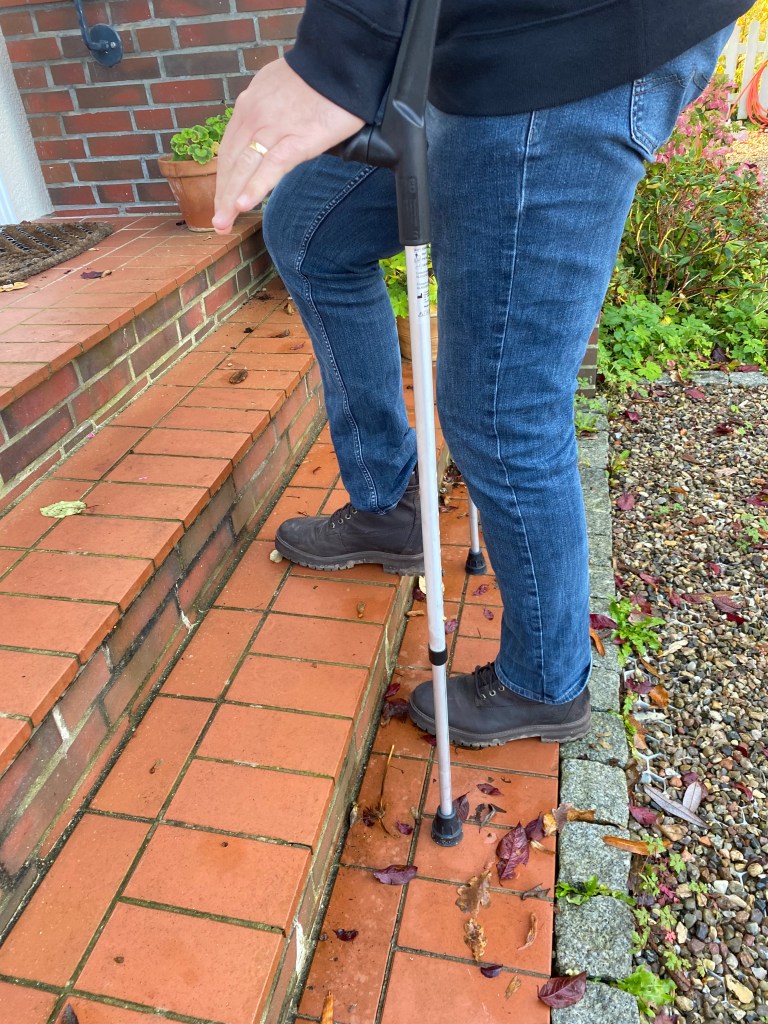 Eigentlich lässt sich die orthopädische Praxis super mit der Bahn erreichen. Sie liegt direkt gegenüber vom Busbahnhof in Altona. Für den Hinweg brachte ich Christoph in Elmshorn zum Bahnhof. Den Bahnsteig 2/3, von dem die Züge Richtung Hamburg fahren, kann man dank des Fahrstuhls auch mit einer Gehbehinderung gut erreichen. In Altona angekommen, konnte er ebenfalls mit Fahrstuhl bzw. Rolltreppe nach oben fahren und den restlichen Weg zur Praxis zu Fuß humpen. Hätte ich ihn mit dem Auto hingebracht, wäre vom Parkhaus aus in etwa dieselbe Wegstrecke zu absolvieren gewesen. Soweit, so gut – auch wenn ihm auffiel, dass der Bodenbelag rund um den Altonaer Bahnhof zum Teil sehr uneben ist, sodass er immer genau hinschauen musste, wo er mit seiner Gestütze als nächstes aufsetzt.
