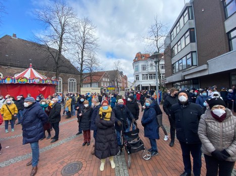 Ich bin froh, dass ich heute bei der Demo mit dabei war. Es ist wichtig, dass wir den Menschen in der Ukraine zeigen, dass wir an sie denken und uns mit ihnen solidarisieren. Dass wir auch unserer Regierung zeigen, was wir von ihrem außenpolitischen Kurs halten – ich persönlich bin mit diesem zurzeit ganz überwiegend einverstanden. Doch auch uns als Zivilgesellschaft tut es gut, uns in einer größeren Gruppe zu treffen, uns unseres Zusammenhalts zu vergewissern, in andere besorgte Gesichter zu blicken, gemeinsam zu demonstrieren und aus den Augenwinkeln zu registrieren, dass auch andere bei so manchen Redebeiträgen mit den Tränen kämpfen. Dass heute so viele Menschen allen Alters in Elmshorn dabei waren, macht mir Mut – vor allem weil es in den vergangenen Monaten eher die selbsternannten Querdenker waren, die mit ihren ‚Spaziergängen‘ Gruppenstärke demonstrieren wollten. Es freut mich, dass der Alte Markt heute von so viel mehr Menschen bevölkert wurde, die nicht etwa gegen eine vermeintliche ‚Impf-Diktatur‘ protestieren, sondern sich mit den Opfern einer lupenreinen echten Diktatur solidarisieren wollten. Das ist mein Elmshorn! Ich hoffe, dass bei der nächsten Veranstaltung dieser Art mindestens ebenso viele Menschen zusammenkommen.