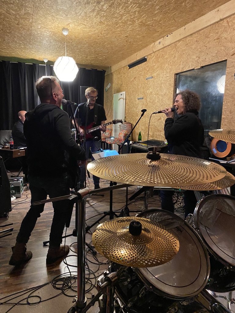 Die beiden ersten Videos und Songs kann man schon über die Homepage der Band, via Instagram und Facebook hören und sehen bzw. auf Spotify hören. Auf YouTube sind sie natürlich ebenfalls zu finden: hier Lose or win und hier Couldn’t do it right. Ehrlicher Old-School Rock mit der stimmgewaltigen Andrea, die tatsächlich erst mit 30 Jahren die Lust am Singen entdeckte und als Rockröhre offensichtlich ebenso viel Spaß hat wie an Jazz-Standards oder Bluesmusik. Bis zum Album-Release-Konzert müssen sich die Fans noch ein bisschen gedulden: Es findet am 28. Januar 2023 im Haus 13 in Elmshorn statt. Ich habe am Freitag bei der Bandprobe schon einen klitzekleinen Vorgeschmack auf die alten und neuen Songs bekommen, die dann gespielt werden. Und bin dabei um die Bandmitglieder herumgeturnt und habe ein paar höchst unprofessionelle Fotos geschossen. Na, aber den Spaß an der Musik sieht man ihnen hoffentlich trotzdem an!