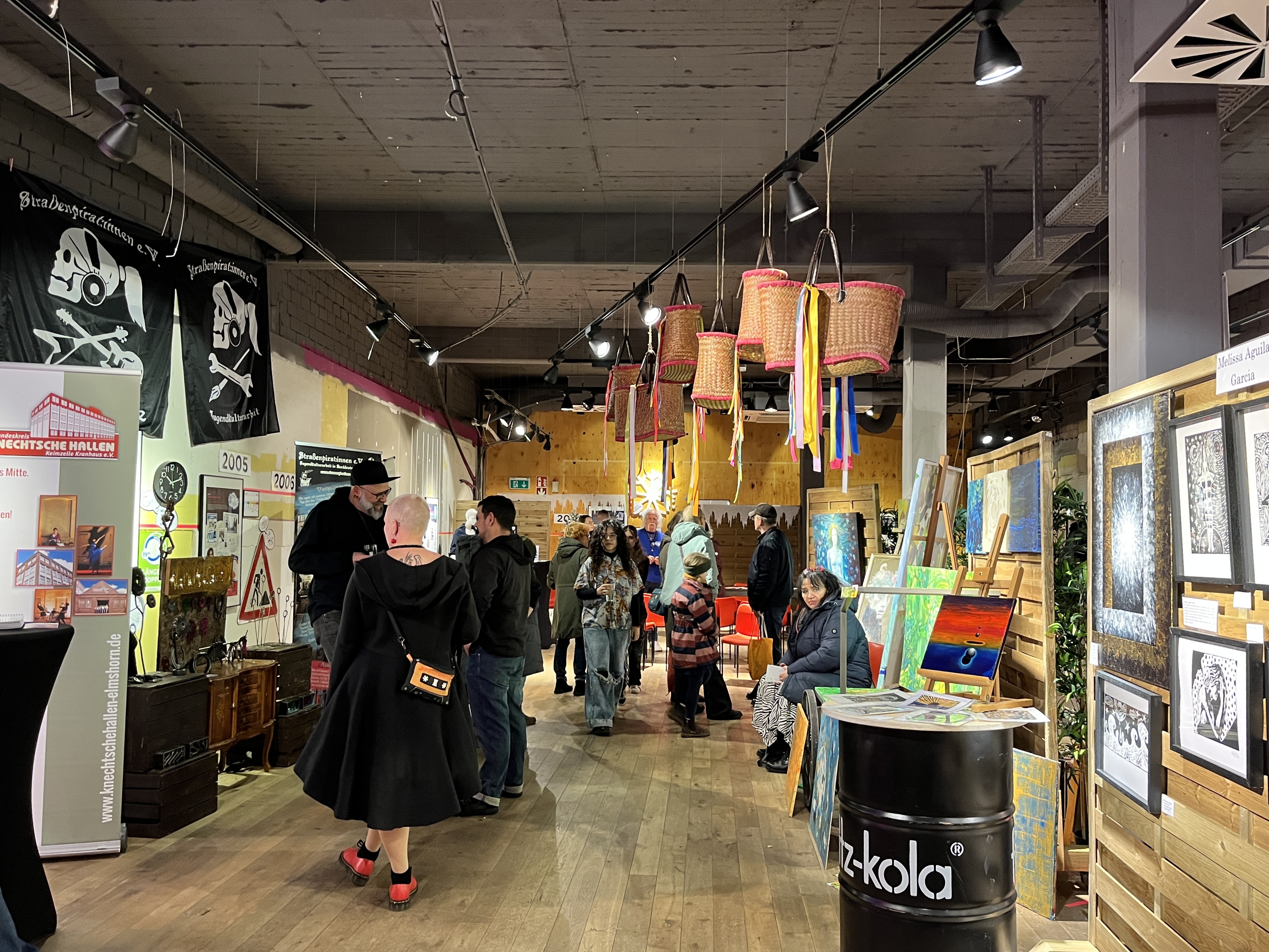 Am vergangenen Freitag also konnte man nicht nur virtuell, sondern ganz leibhaftig im kulturellen Angebot dieser Stadt stöbern. Ich habe mich gefreut, zum ersten Mal Nik Metallgelöt persönlich kennen zu lernen, dem ich mit seinen witzigen Metallkreationen aus Fahrradketten und anderen Alltagsgegenständen seit einer Weile auf Instagram folge. Daneben engagiert er sich aber auch bei den Straßenpirat:innen, die tolle Aktionen für Kids und Jugendliche auf die Beine stellen. Wir haben auch mit den Leuten vom Förderverein MS Klostersande geschnackt und uns fest vorgenommen, endlich einmal eine Veranstaltung auf der MS Klostersande zu besuchen – Asche auf mein Haupt, ich war tatsächlich noch nie im Bauch dieses historischen Schiffs! Ich finde es wunderbar, wie viele Leute sich ganz überwiegend ehrenamtlich für kulturelle Vielfalt in unserer Stadt einsetzen.