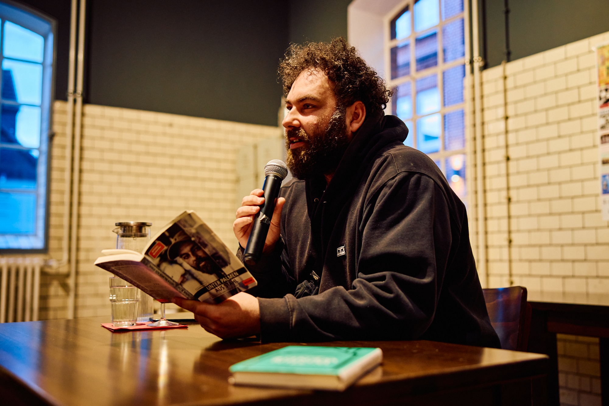 Das erste Kapitel, das er uns vorlas, handelte von seiner ersten Nacht auf der Straße. Seine Mutter hatte ihn vor die Tür gesetzt, als er 16 Jahre alt war. Das klingt einfach nur furchtbar – und ist es natürlich auch. Doch er gibt seiner Mutter keine Schuld daran. Sie hatte sich nach einer schwierigen Kindheit mit den falschen Männern eingelassen, wurde mit 18 zum ersten Mal Mutter und war bald darauf alleinerziehende Mutter von zwei Söhnen. Sie arbeitete als Krankenschwester in einem veranwortungsvollen und belastenden, aber sehr schlecht bezahlten Beruf und hatte nach dem Umzug ihrer kleinen Familie aus Süddeutschland nach Hamburg kein soziales Netz, das sie im Alltag hätte unterstützen können. Die dauerhafte Überforderung und das Leben in Armut machten sie krank: Burnout, Depressionen, bipolare Störung… am Ende wurde bei ihr eine Schizophrenie diagnostiziert. Dominik betonte mehrfach, dass er Verständnis dafür hat, dass sie ihm in dieser Situation keine Mutter mehr sein konnte. „Jeder Mensch hat seine eigenen 100% Energie“, betonte er. Die Energie seiner Mutter war aufgebraucht, eine Chance zum Aufladen der Akkus nicht in Sicht. „Mich rauszuschmeißen, war mit Sicherheit die schwerste Entscheidung, die sie je getroffen hat.“ Ich habe größten Respekt vor dieser Haltung ohne Vorwurf oder Schuldzuweisung.